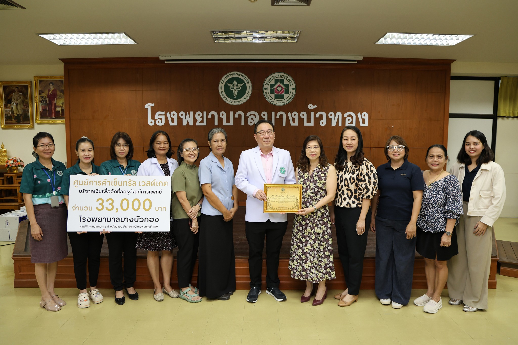 โรงพยาบาลบางบัวทอง ขอขอบพระคุณ ศูนย์การค้าเซ็นทรัลเวสต์เกต ที่ร่วมบริจาคเงินเพื่อสมทบทุนซื้อครุภัณฑ์การแพทย์โรงพยาบาลบางบัวทอง