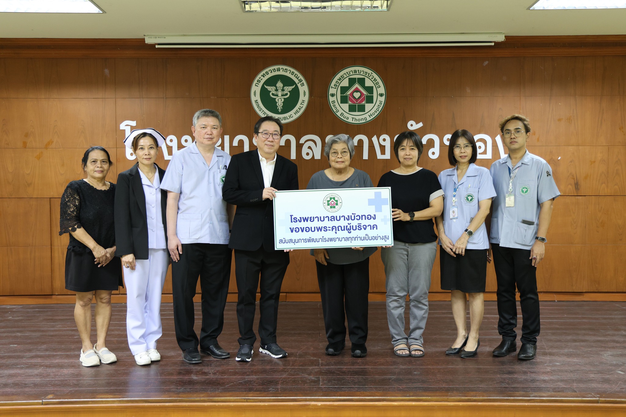 โรงพยาบาลบางบัวทอง ขอขอบพระคุณ คุณแม่ปราณี ศุขโข และครอบครัว ที่ร่วมบริจาคเงินเพื่อสมทบทุนซื้อครุภัณฑ์การแพทย์โรงพยาบาลบางบัวทอง